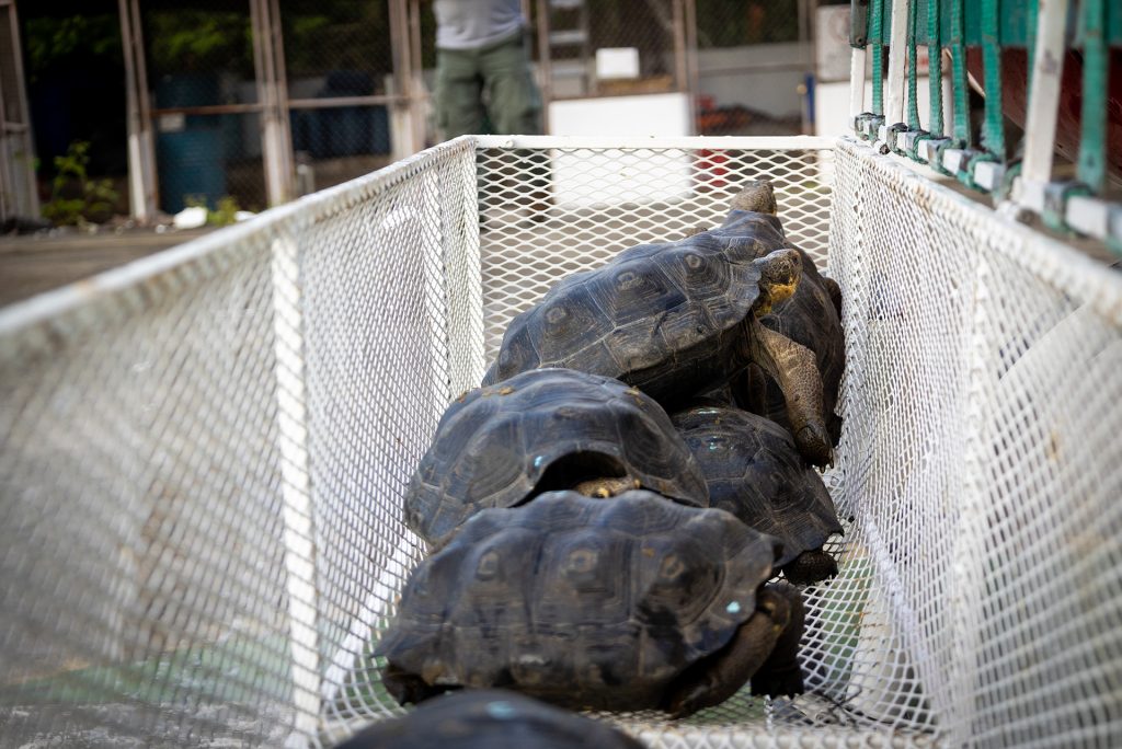 This species was once widespread on the island of Española, but by the 1960s, only about 15 individuals remained, all living in captivity. The captive breeding program is a complex operation involving the repatriation of tortoises from breeding centers where they were hatched and raised to Española Island. The tortoises are carefully selected based on age, size, and health and undergo a rigorous quarantine period before being transported to the island. Once on Española, the tortoises are released into carefully selected areas that provide suitable habitat conditions. The tortoises are fitted with microchips and regularly checked to ensure their health and survival rate.